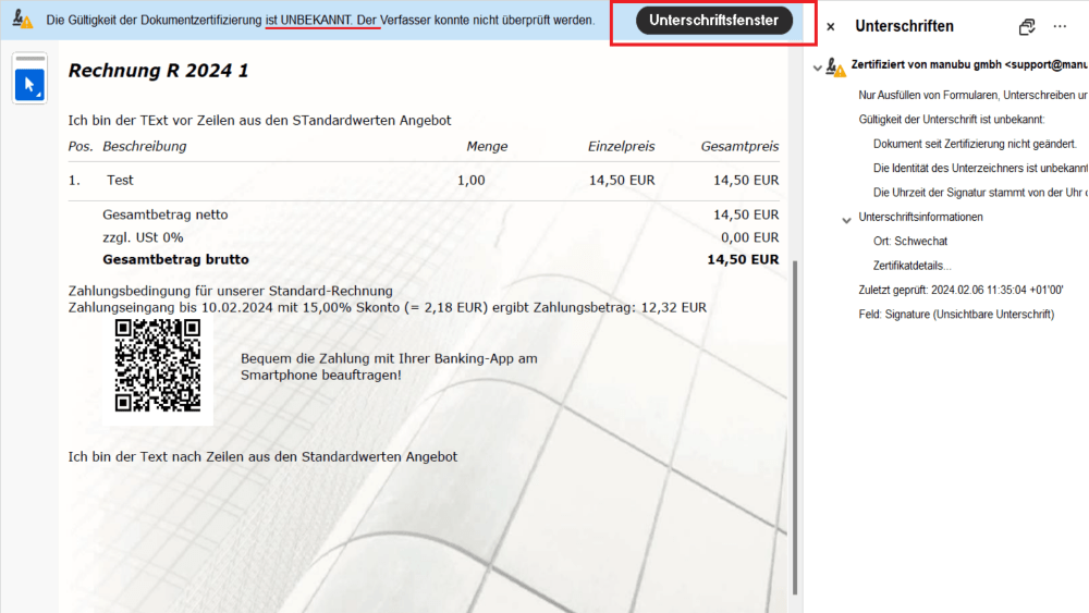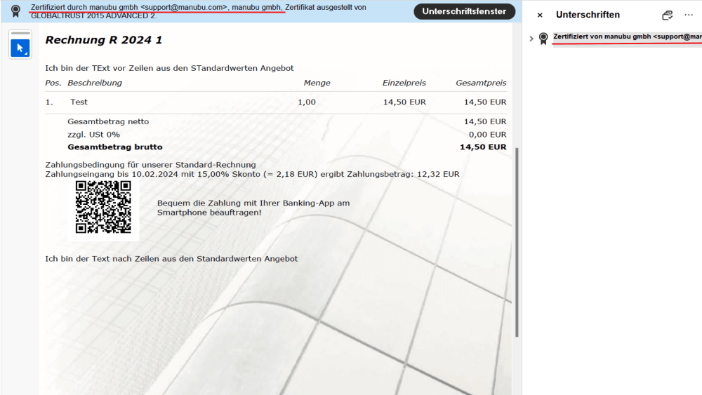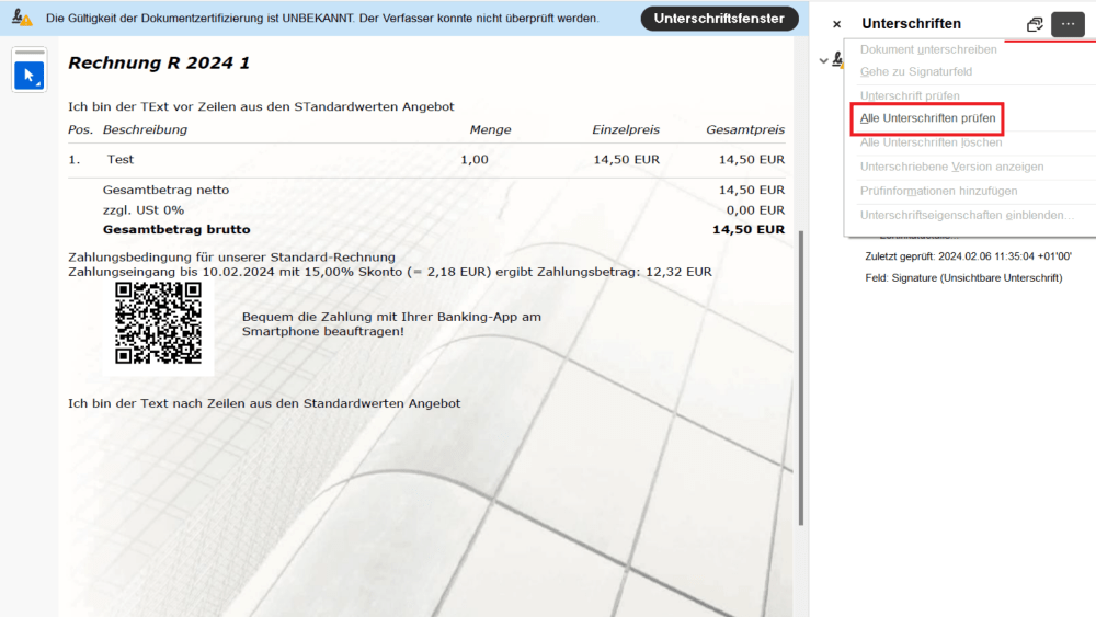 Die Echtheit der Rechnung sollte nachweisbar sein. Dies kann einerseits durch eine auf Papier ausgedruckte Rechnung nachgewiesen werden oder bei digital übermittelten Rechnungen mittels Sicherheits-Zertifikaten oder Signaturschlüssel.