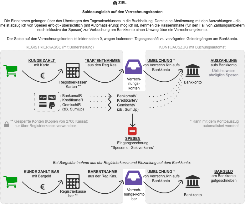 Das bedeutet konkret, es reicht nicht aus, einfach den am Bankkonto eingelangten Betrag zu verbuchen - sondern transaktionsbasierend anhand der jeweiligen Abrechnungen.