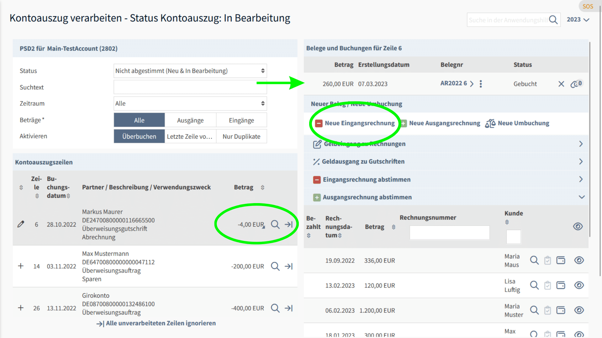 2. Schritt Verarbeitung aus dem Kontoauszug: die Einnahme