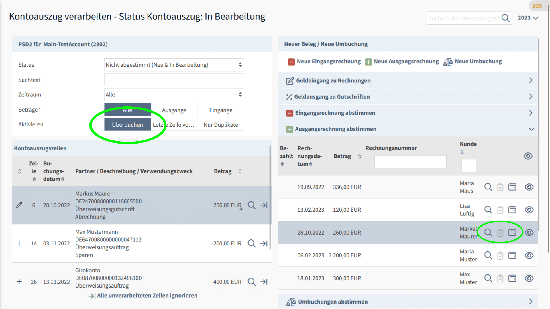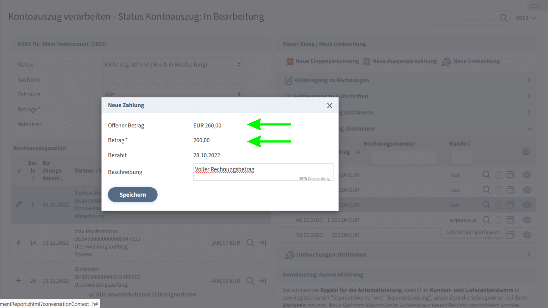 Eine weitere Möglichkeit einzelne Buchungen, welche bereits um Spesen vermindert ausbezahlt wurden, abzustimmen, besteht in der Möglichkeit des Überbuchens.