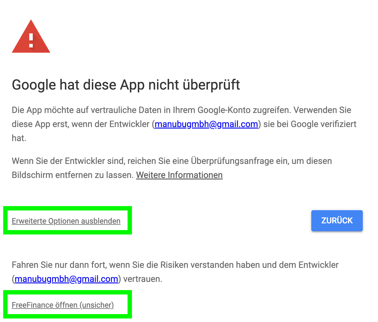 - Erlauben Sie FreeFinance den Zugriff auf Ihr Storage