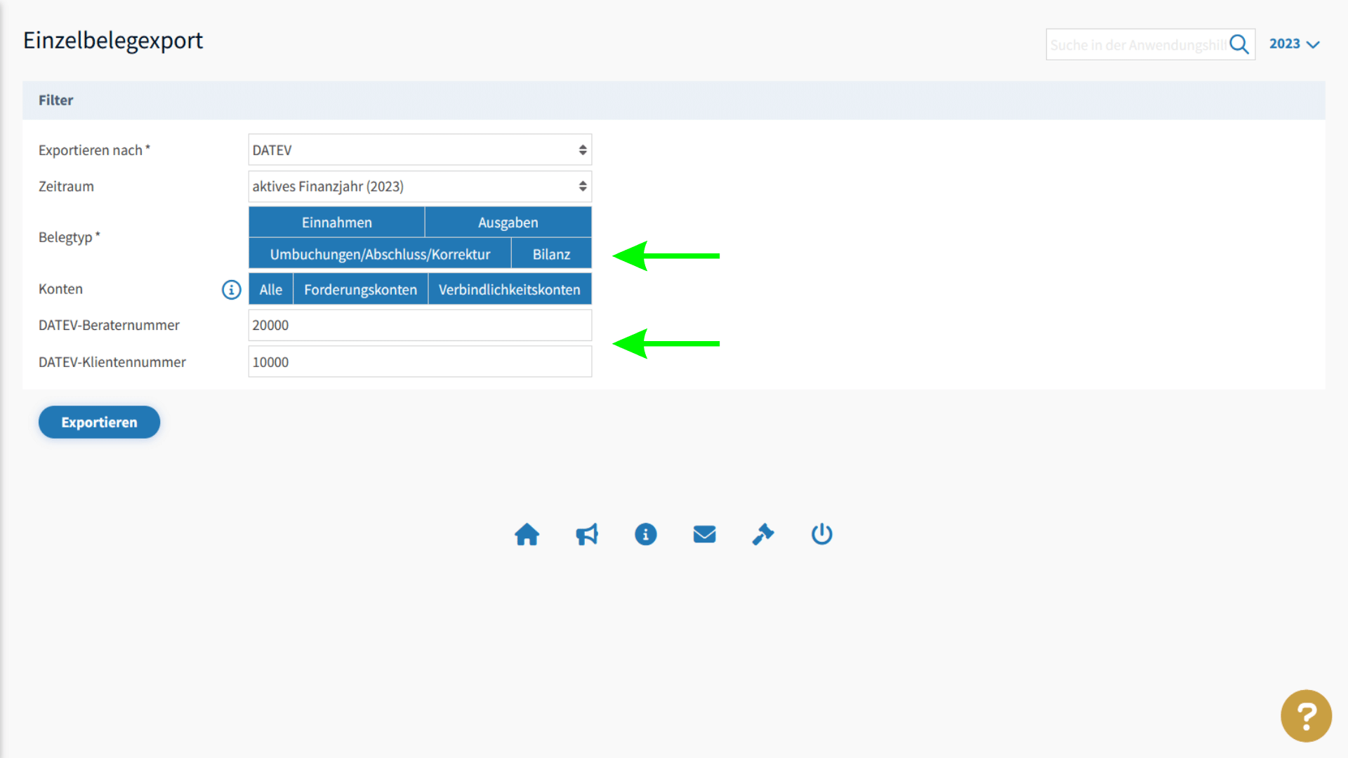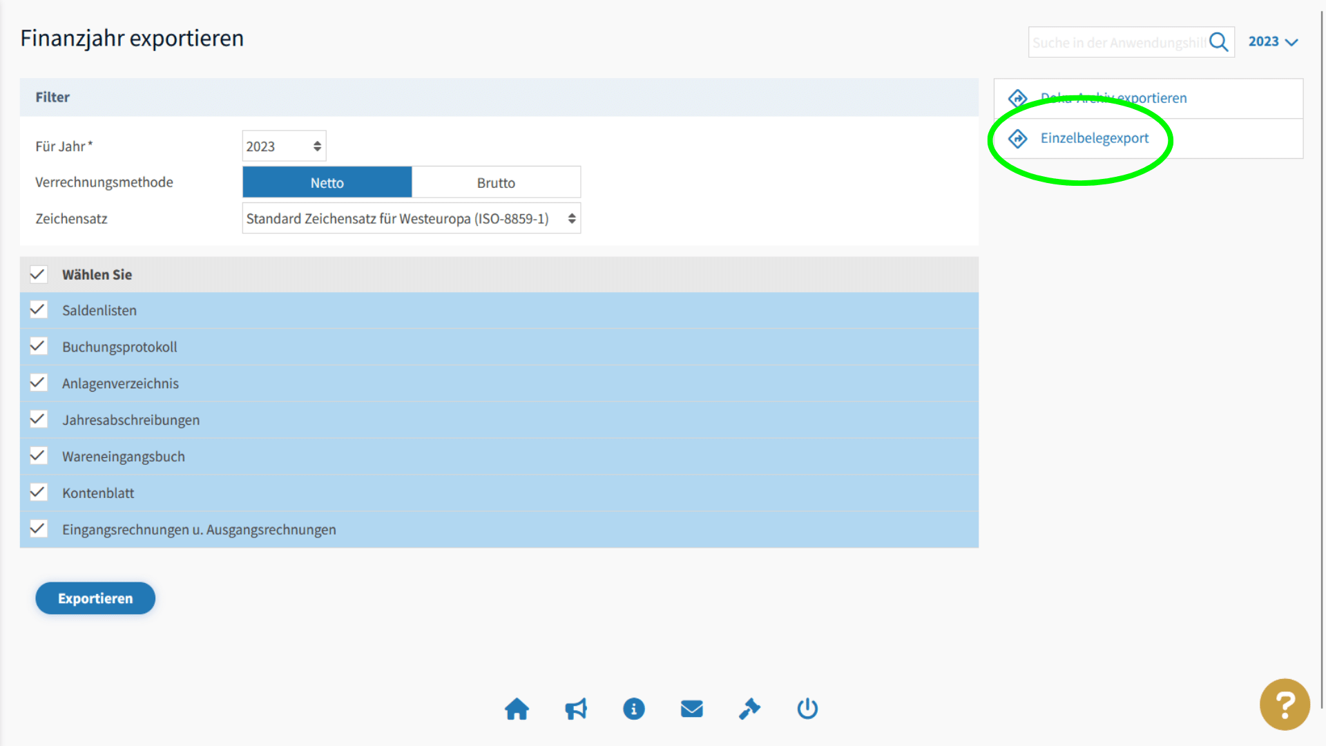Der Export Einzelbelege gibt dem Steuerberater die Möglichkeit, die Einzelbuchungen des aktuellen Mandanten / Klienten einfach in das Steuerberater-Buchhaltungssystem zu importieren. Dafür wird eine Buchhaltungssystem-spezifische Export-Datei erstellt.