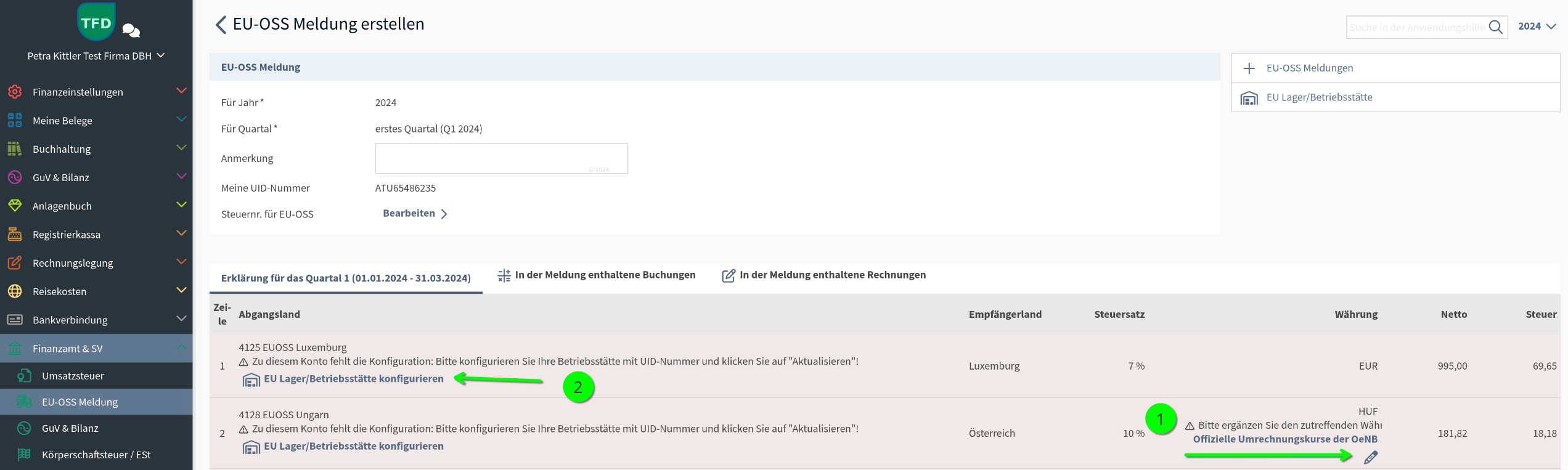 Sämtliche EU-OSS-Umsätze werden zwar in der E1A/K1 mitgerechnet (mit Nettobetrag), nicht jedoch in der deutschen UVA und USt-Erklärung.