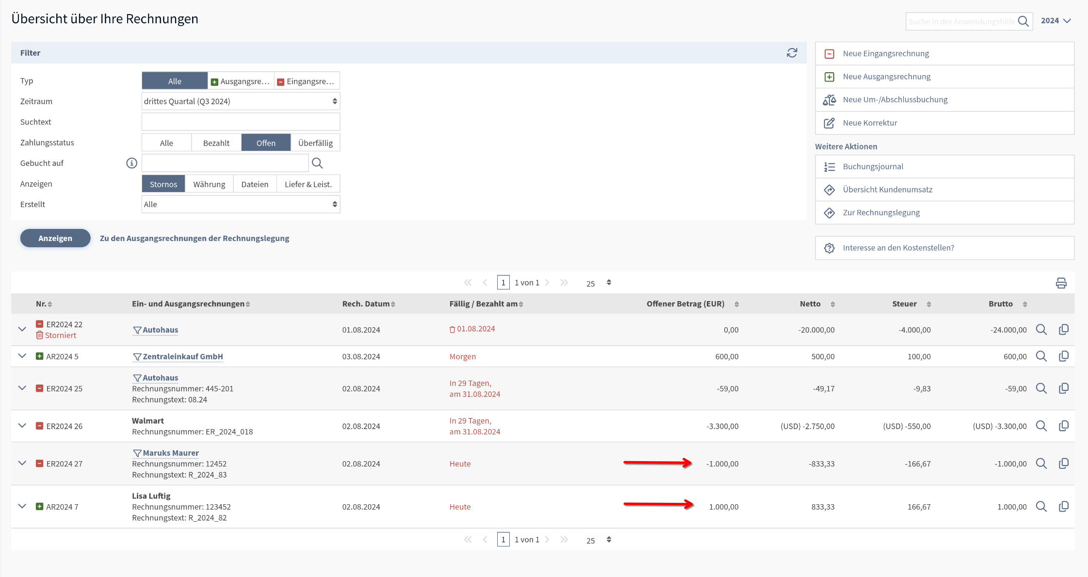 Dieser offene Posten kann nun wie oben beschrieben durch einen Zahlungseingang geschlossen werden.