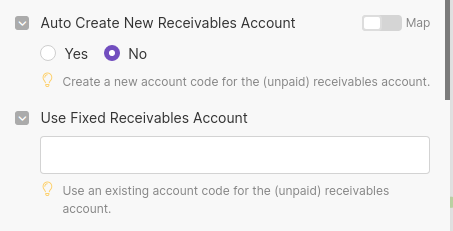 Wird keine der beiden Forderungskonto-Optionen gewählt oder eingetragen, wird das Standardforderungskonto verwendet.
