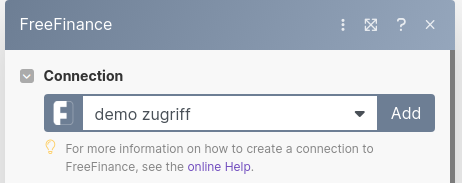 Diese Verbindung müssen Sie nur ein Mal einrichten - die Verbindung kann in allen FreeFinance-Modulen verwendet werden.