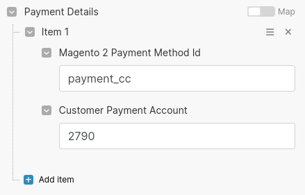 Das Mapping muss die Magento 2 Payment Method Code mit dem FreeFinance Buchhaltungskonto des Zahlungsmittels verbunden werden.