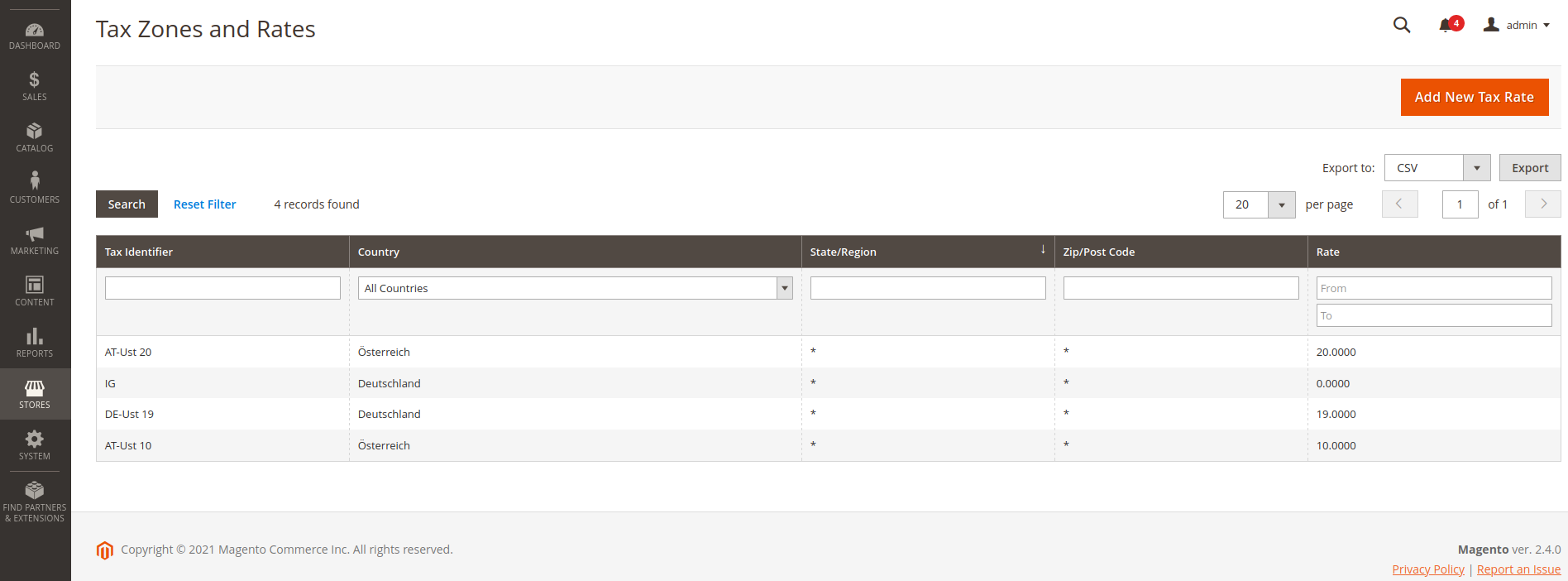 Magento 2 Steuermappings haben folgendes Format: