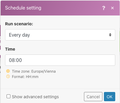 Achtung: Jeder Abruf ist eine Make-Transaktion, auch wenn keine Daten übernommen wurden. Wird dies nun zu oft pro Tag durchgeführt, werden die 1000 Transaktionen in der Gratis-Version schnell ausgeschöpft!