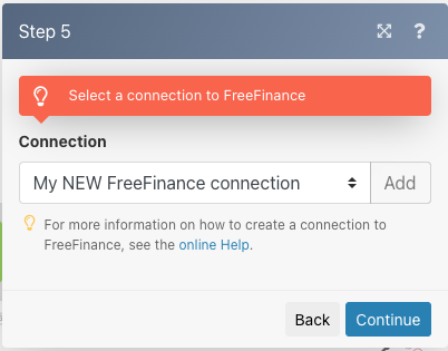 Sie können vordefinierte Szenarien von FreeFinance aufrufen und in Ihrem make.com Account als neues Szenario hinzufügen.