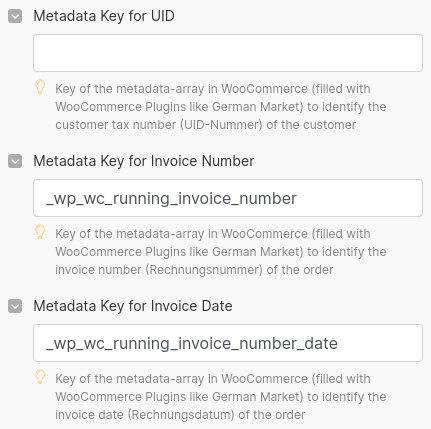 - UID-Nummer des Kunden: nur für B2B Verkäufe relevant - Mapping-Key je nach Plugin unterschiedlich.