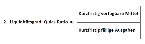 Bei der Quick Ratio wird das Verhältnis des vorhandenen Geldvermögens zuzüglich Wertpapierbestand sowie der kurzfristigen Forderungen zu den kurzfristigen Verbindlichkeiten des Unternehmens beleuchtet.
