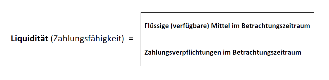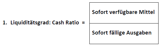 Das Verhältnis kurzfristig verfügbarer Zahlungsmittel zu kurzfristig fälligen Verbindlichkeiten des Unternehmens wird durch folgende Formel berechnet: