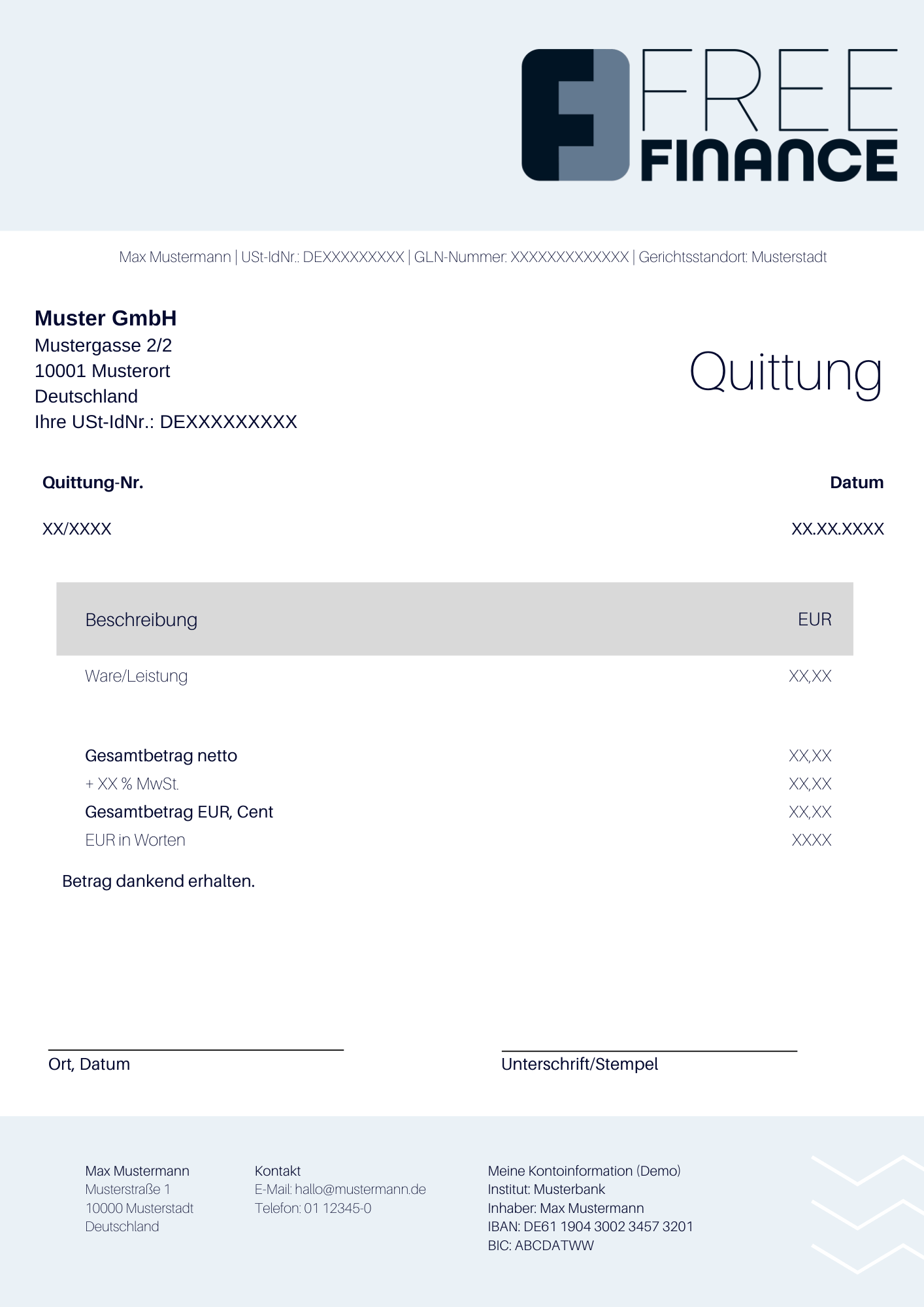 Zweck: Die Vorlage unterstützt Sie beim schnellen und korrekten Ausfüllen von Quittungen.