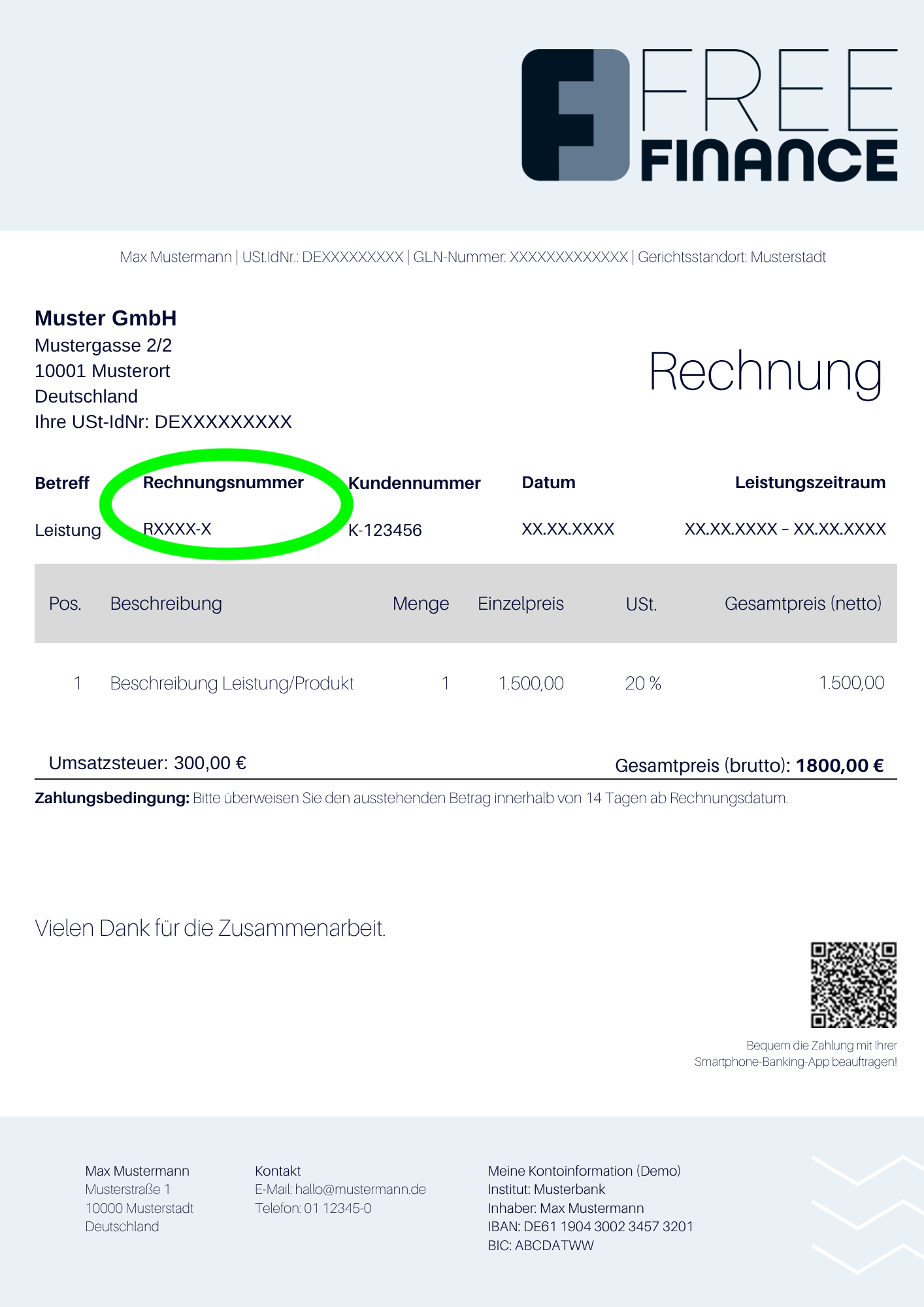 Die Rechnungsnummer ermöglicht eine einmalige Zuordnung und stellt damit die Transparenz und Nachvollziehbarkeit im Geschäftsverkehr sicher.