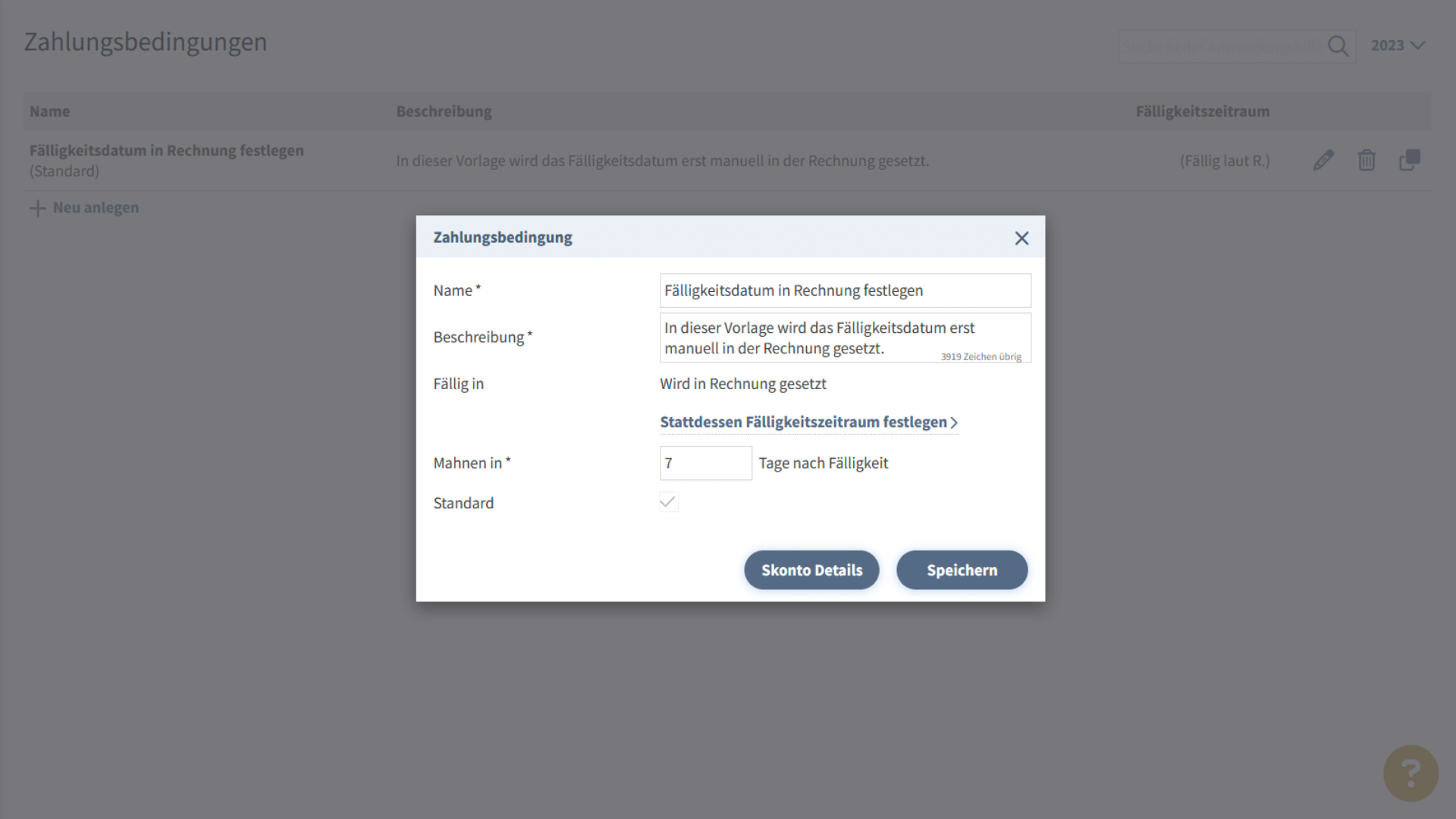 Zahlungsbedingungen - Fälligkeit in der Rechnung setzen