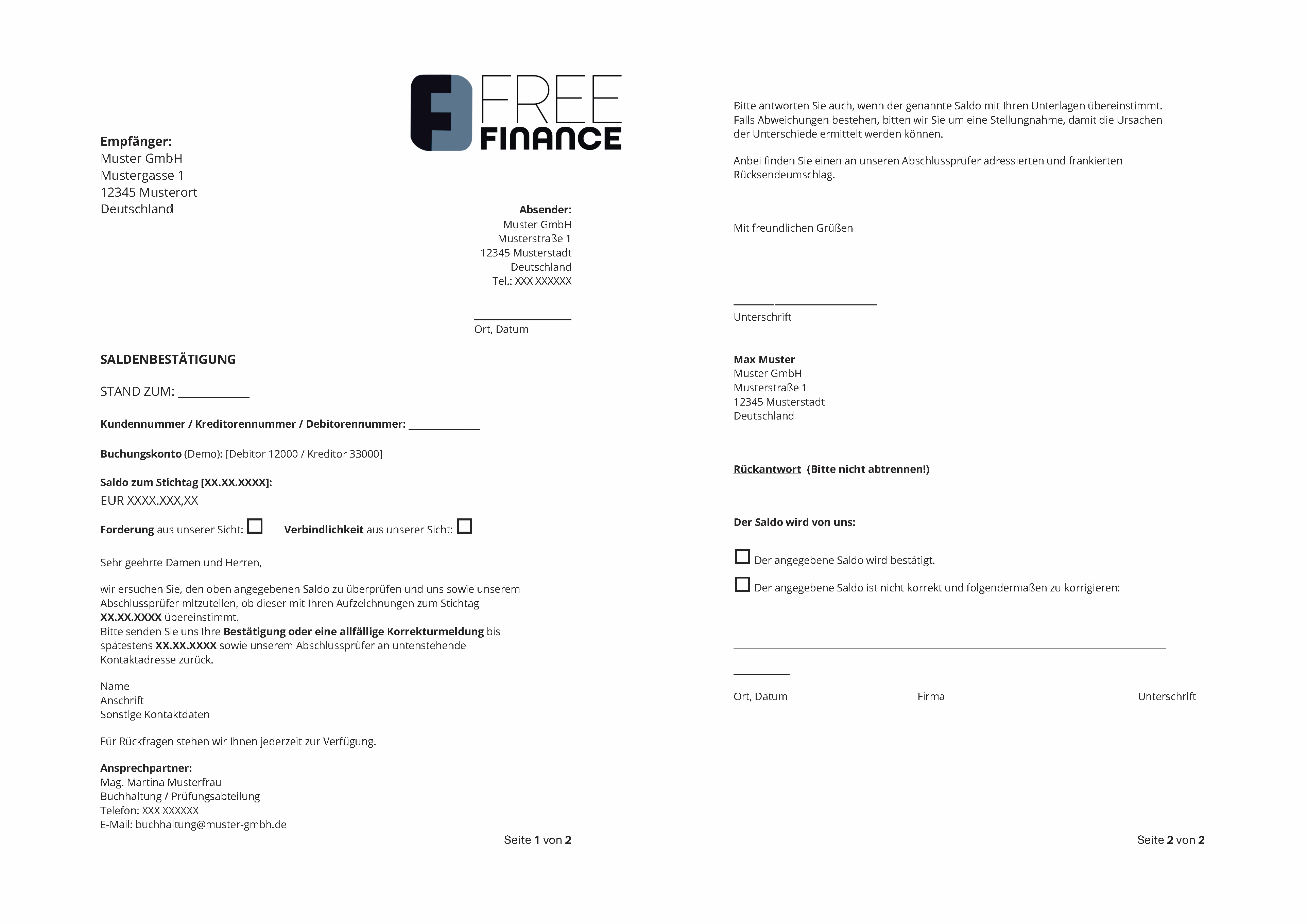 Im praktischen Ablauf wird dem Geschäftspartner der Saldo zum Bilanzstichtag (z. B. 31.12.) übermittelt – mit der Bitte um Bestätigung oder Korrektur. Dabei wird unterschieden zwischen: